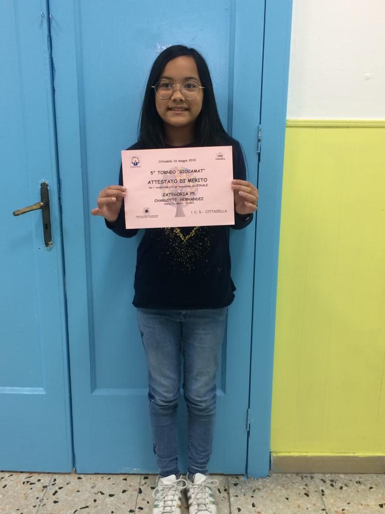 Maria Rita Battaglia si è qualificata vincitrice per la sua categoria su piano nazionale, classificandosi nona su ottanta concorrenti provenienti da tutta Italia, premiata con l’attestato di merito e qualifica ricevendo i complimenti degli organizzatori del concorso riservato agli allievi della scuola primaria.